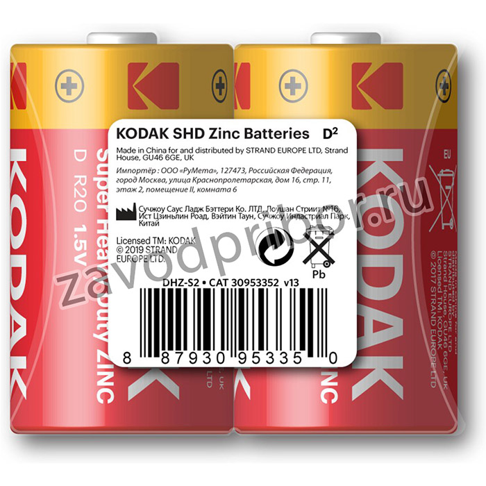 —Батарейки Kodak R20-2S SUPER HEAVY DUTY Zinc [KDHZ 2S]