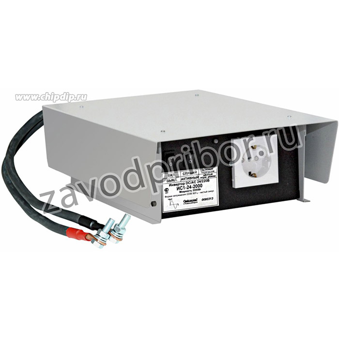 Инвертор ИС1-24-2000Р (преобразователь напряжения DC-AC) преобразует постоянное напряжение аккумулятора 24 В в переменное синусоидальное напряжение 220 В и частотой 50 Гц. Качественные характеристики такого напряжения аналогичны характеристикам напряжения в бытовой сети.