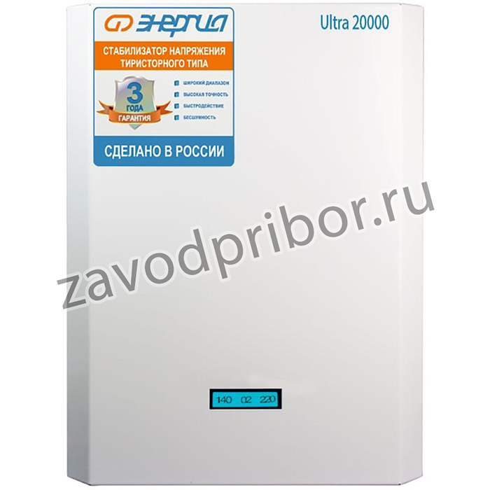 Тиристорный стабилизатор Энергия 20000 ВА Ultra Е0101-0107 обеспечивает стабильное снабжение оборудования мощностью до 16 кВт электроэнергией высокого качества (отклонение напряжения не превышает 3%). Регулировка напряжения осуществляется ступенчатым способом. Максимальный ток на входе составляет 96 А. Прибор уверенно работает в широком температурном диапазоне - от -30 до +40 градусов. Модель является самой мощной в линейке Ultra. Высокая точность стабилизации обусловлена наличием микропроцессора и тиристоров. Заявка:
