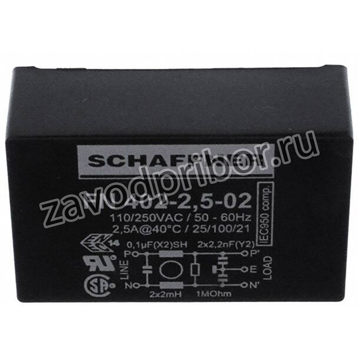 FILTER, 2.5A, PCB MOUNT; Capacitance:0.1µF; Voltage Rating:250VAC; Filter Type:Standard; Current Rating:2.5A; Filter Terminals:Through Hole; Inductance Min:2mH; Leakage Current Max:190µA; Product Range:-; SVHC:No SVHC (15-Jan-2019); Bleed Resistor Resistance:1Mohm; Capacitance X:100nF; Capacitance Y:2.2nF; External Depth:28mm; External Length / Height:16.5mm; External Width:45mm; Fixing Centres LxW:33 x 20; Lead Diameter:0.6mm; Lead Length:4mm; No. of Inductors:2; No. of Phases:Single Phase; No. of X Type Capacitors:1; No. of Y Type Capacitors:2; RMS Current (Irms):3A; Supply Frequency Max:400Hz; Supply Frequency Min:0Hz; Voltage Rating VAC:250V; Weight:40g Заявка: