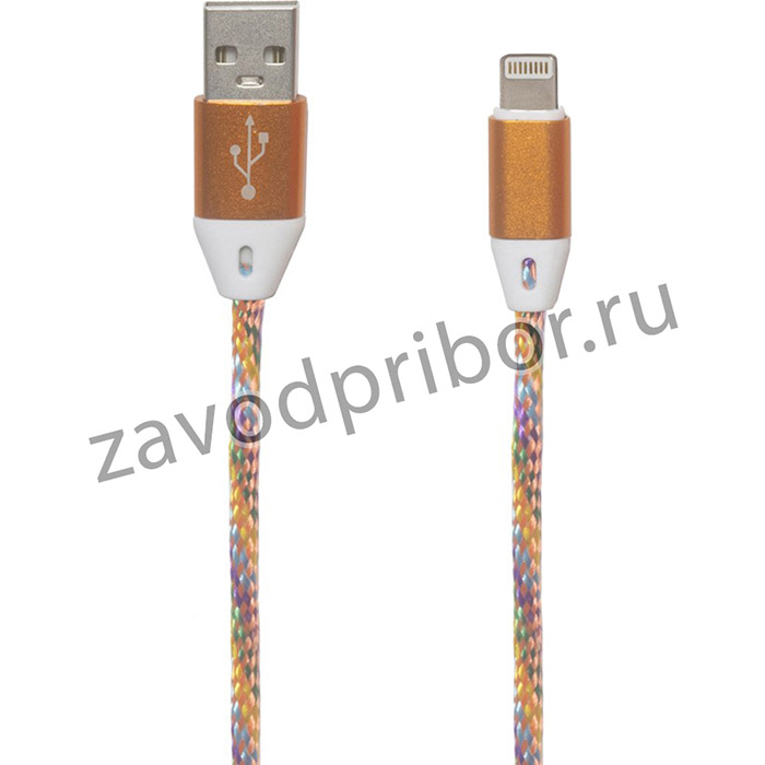 —USB кабель "LP" для Apple Lightning 8 pin оплетка и металлические разъемы 1м оранжевый