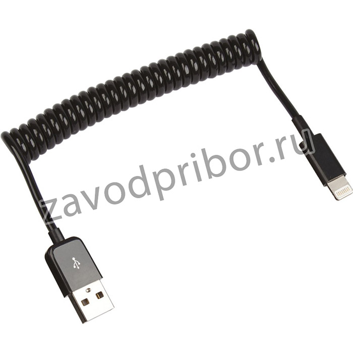 —USB кабель LP для Apple 8 pin пружина 1 м. черный, европакет
