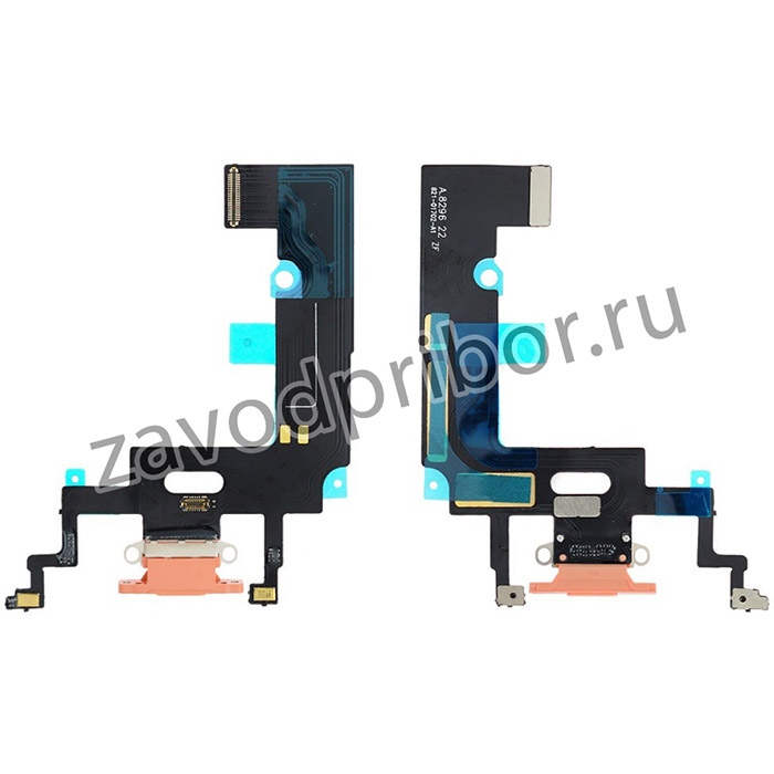 —Шлейф для iPhone XR + разъем зарядки + микрофон (розовый)