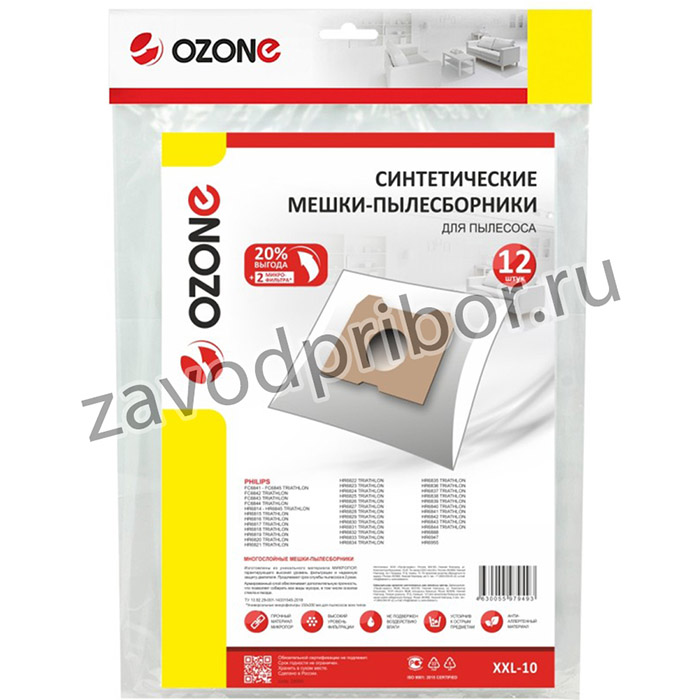 Мешки-пылесборники Ozone XXL-10 предназначены для пылесоса PHILIPS. Мешки изготовлены из многослойного синтетического материала, отличаются прочностью, не рвутся во время использования. Имеют высокий уровень фильтрации. Служат для одноразового использования, легко снимаются и утилизируются. Тип мешка: HR 6947.