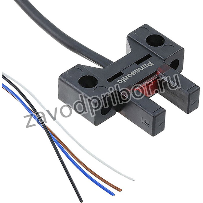Panasonic PM-45 series ultra-small U-shaped micro photoelectric sensors. The PM series sensors feature a through beam detection type with the emitter and receiver contained within a single U-shaped housing.