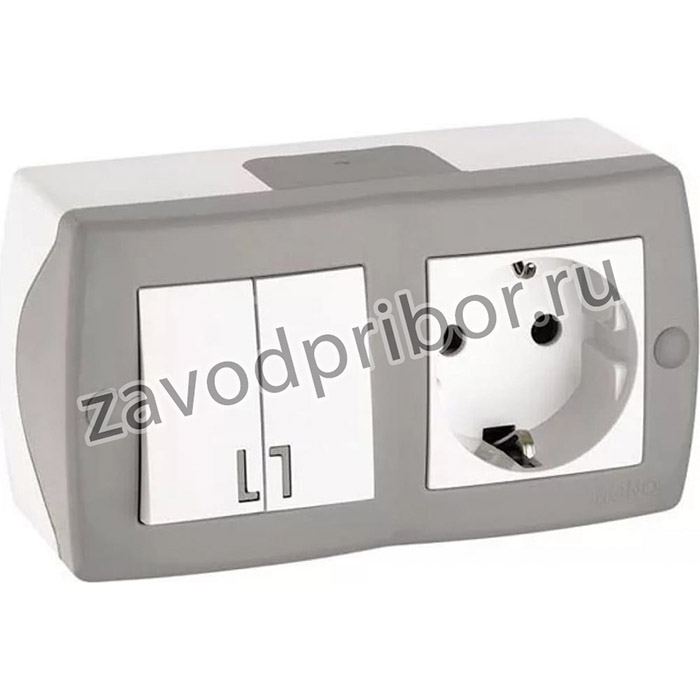2-клавишный выключатель+розетка с заземлением Octans, серый 104-020001-181