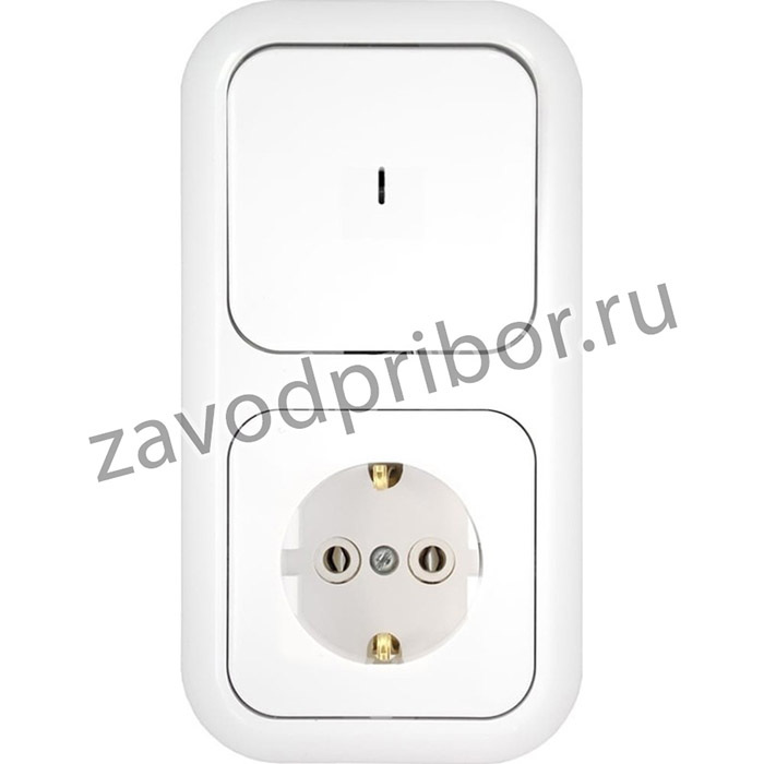 —Блок 1 выключатель + розетка с заземляющим контактом скрытой установки с подсветкой, серия ГАРМОНИЯ, белый, В-РЦ-673