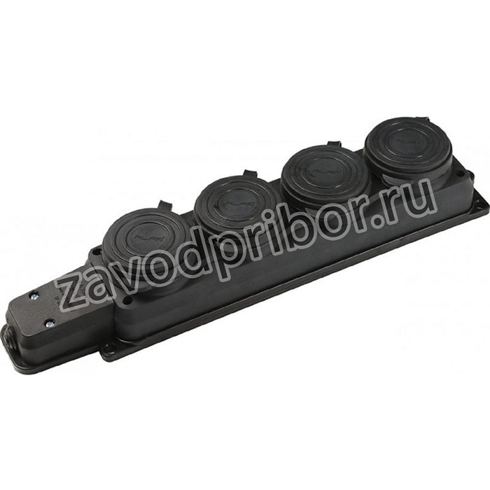 4104, колодка штепсельная 4-гн. с/з с крышками 16а, ip54, черный (каучук)