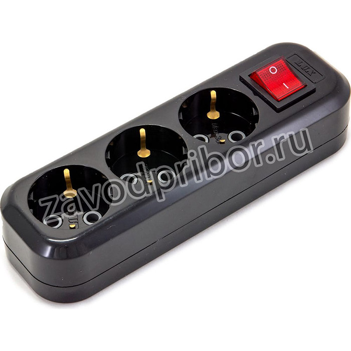 колодка черная (розетка удлинителя) У3-ЕВК 3-местная с з/к и выкл-м, 250В 16А 4606400420859