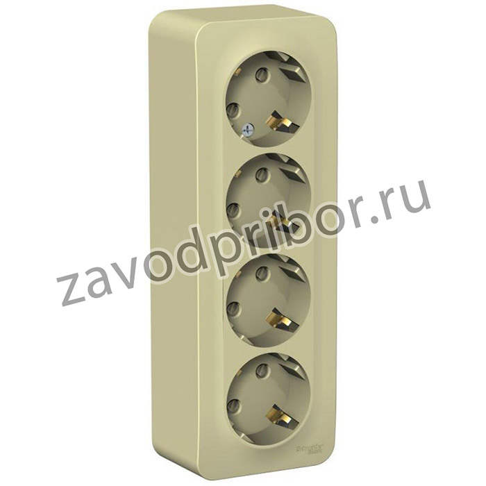 Розетка Schneider Electric Blanca (открытой установки, цвет бежевый) четырехместная с заземлением и шторками, с изолирующей пластиной подходит для сетей 250 В, на ток 16 А.Заземляющий контакт обеспечивает дополнительную защиту от удара электрическим током. При наличии заземления электрический потенциал уходит в землю, защищая человека.