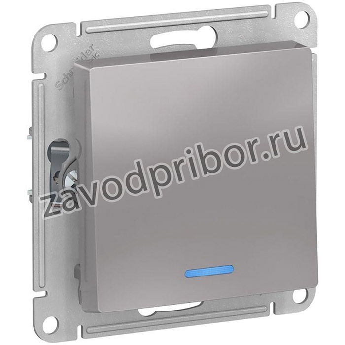 Механизм Schneider Electric AtlasDesign (цвет алюминий) выключателя 1-клавишного с подсветкой подходит для сетей 250 В, на ток 10 А. - Благодаря светодиодной подсветке синего цвета изделие легко найти в темноте. - Усиленные прямые монтажные лапки для лучшей фиксации механизма в монтажной коробке. - Лицевые детали из качественного ABS-пластика, устойчивого к царапинам и УФ-излучению. Заявка: