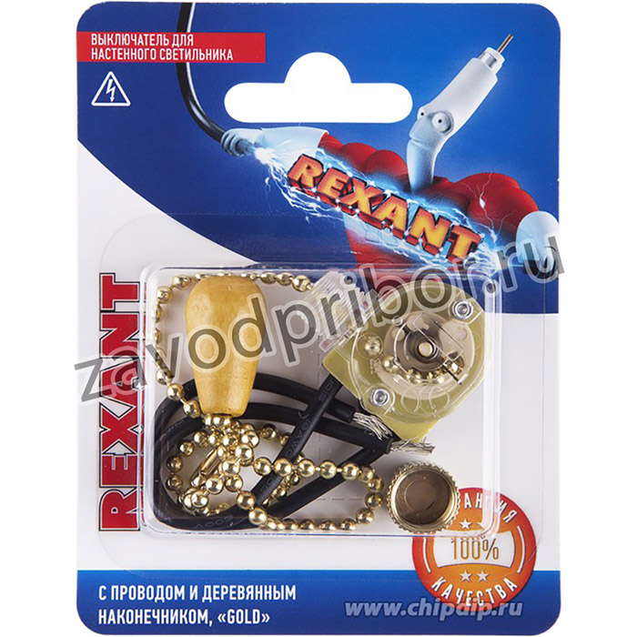 Выключатель для настенного светильника с хромированной цепочкой, проводами и деревянным наконечником. Длина цепочки: 270 мм