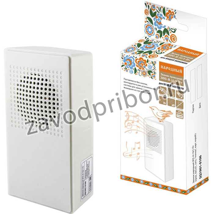 —Звонок народный ЗПС-Н-10/1-Пт (пров. без.кн., сеть, "птичка", карт.короб.)