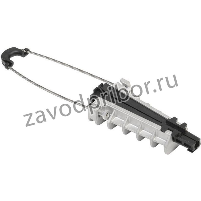Зажим анкерный клиновой обеспечивает фиксацию проводника путем срабатывания простого призматического механизма, рабочие поверхности которого сходятся под острым углом. На опоре ЛЭП зажим фиксируется с помощью тросика.