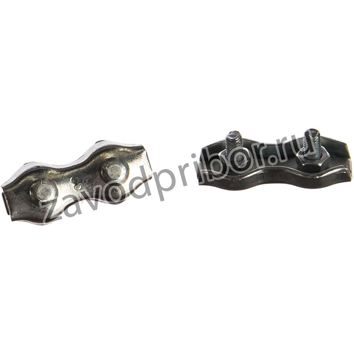 Зажим для троса двойной D-SWR (Duplex) состоит из следующих элементов: пластина с изогнутыми краями, которая служит основанием, два винта с метрической резьбой, приваренные к пластине-основанию, прижимная пластина и две шестигранные гайки. Зажим изготовлен из углеродистой стали с антикоррозионным цинковым покрытием. Применяется при производстве грузоподъемных работ для сращивания стальных тросов, канатов диаметром от 2 до 10 мм и для формирования петель на их концах. При установке зажима стальной трос или канат размещается на пластине-основании по обоим краям, затем прижимается второй пластиной и затягивается гайками. Двойной зажим D-SWR (Duplex) отличается от одинарного зажима C-SWR (Simplex) более высокой прочностью сращивания. Рекомендуется устанавливать не менее двух зажимов на один узел сращивания или одну петлю. Заявка: