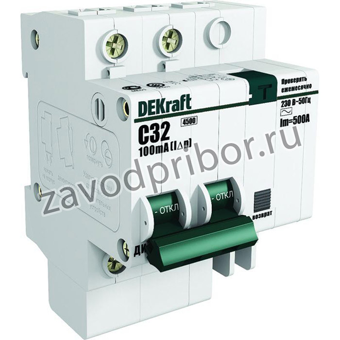 —Выключатель автоматический дифференциального тока 2п C 10А 30мА тип AC 4.5кА ДИФ-101 4.5мод. DEKraft 15002DEK