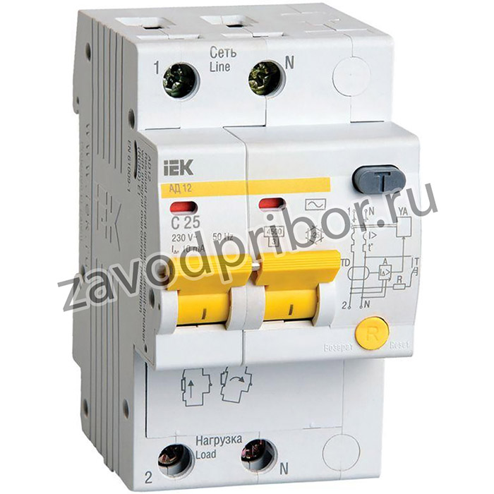 —Выключатель автоматический дифференциального тока 2п C 25А 10мА тип AC 4.5кА АД-12 IEK MAD10-2-025-C-010