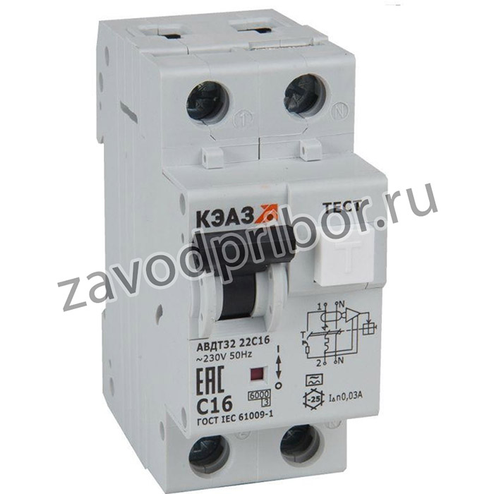 Автоматический выключатель дифференциального тока на номинальный ток 40 А и номинальный отключающий дифференциальный ток 30 мА. Заявка: