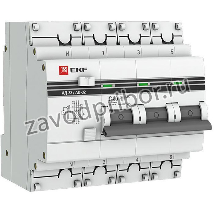 —Выключатель автоматический дифференциального тока 4п (3P+N) C 40А 30мА тип AC 4.5кА АД-32 защита 270В электрон. PROxima EKF DA32-40-30-4P-pr