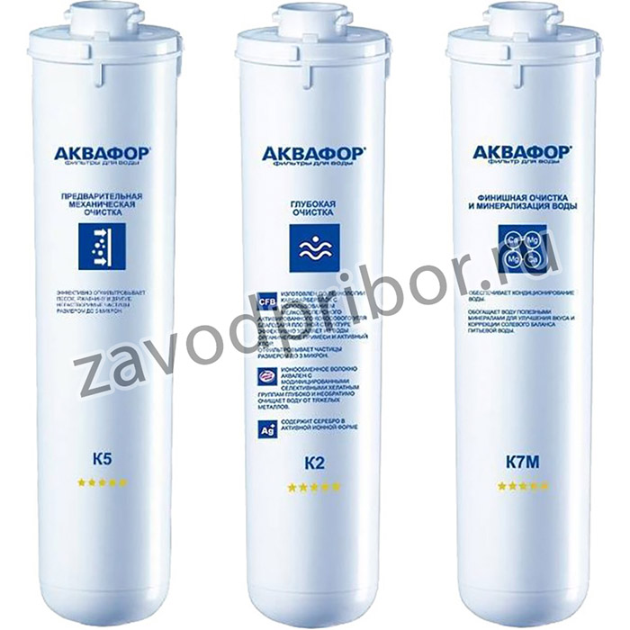 Модуль К5 - предварительная сорбционная очистка питьевой воды (для частиц размером 5 мкм). Модуль К2 - глубокая сорбционная доочистка питьевой воды (для частиц размером 3 мкм). Модуль К7M - финишная сорбционная очистка и кондиционирование питьевой воды (для частиц размером 0,8 мкм).Особенности: Комплект рассчитан на мягкую воду и не снижает избыток минеральных солей (жесткость) - основную причину появления накипи. Обеззараживает воду. Механическая фильтрация. Ионный обмен. Сорбция. Защита от бактерий стандартная.