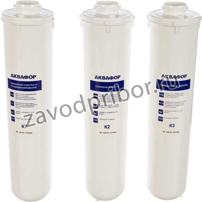 Отфильтровывает частицы размером до 5 микрон (замена 1 раз в год); К2 - глубокая доочистка воды - защита от органических примесей и активного хлора. Отфильтровывает частицы размером до 3 микрон. Содержит серебро в активной ионной форме (замена 1 раз в 6 месяцев); К7 - финишная сорбционная очистка воды - удаляет остаточные концентрации органических примесей и тяжелых металлов, отфильтровывает частицы размером до 0.8 микрон (замена 1 раз в год). К3 - очистка крупных взвесей и растворенных частиц ржавчины - защищает модули глубокой очистки и продлевает срок их жизни, снижая расходы на обслуживание фильтра. Рекомендуется для воды с большим содержанием песка, ржавчины и других механических примесей размером до 5 микрон. Заявка: