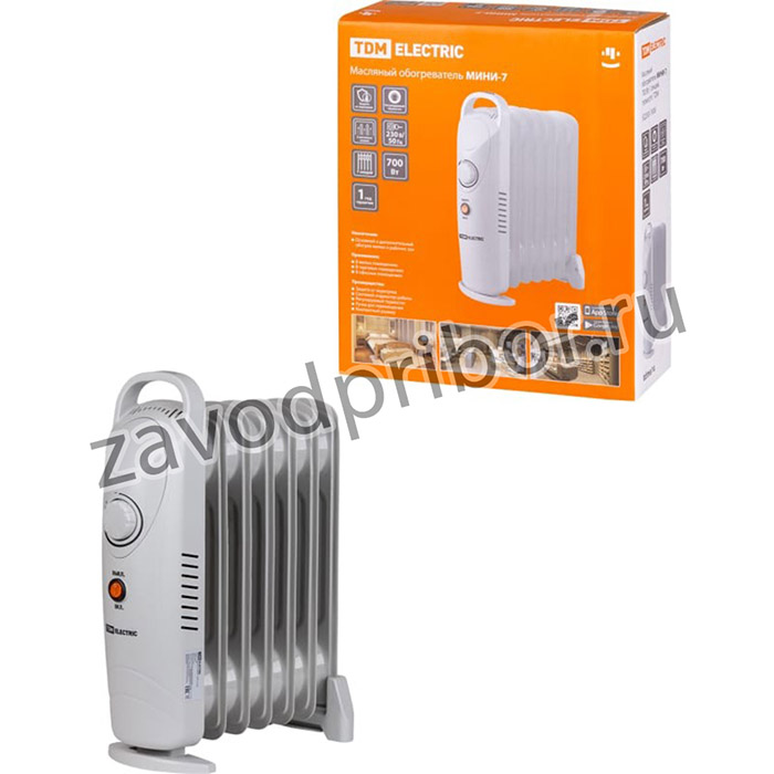 Масляный обогреватель TDM МИНИ-7, 700 Вт, 7 секций, термостат, SQ2501-0908 применяется для основного и дополнительного обогрева жилых, производственных, торговых и офисных помещений.Компактные габариты и небольшой вес позволяют легко перемещать и транспортировать устройство.