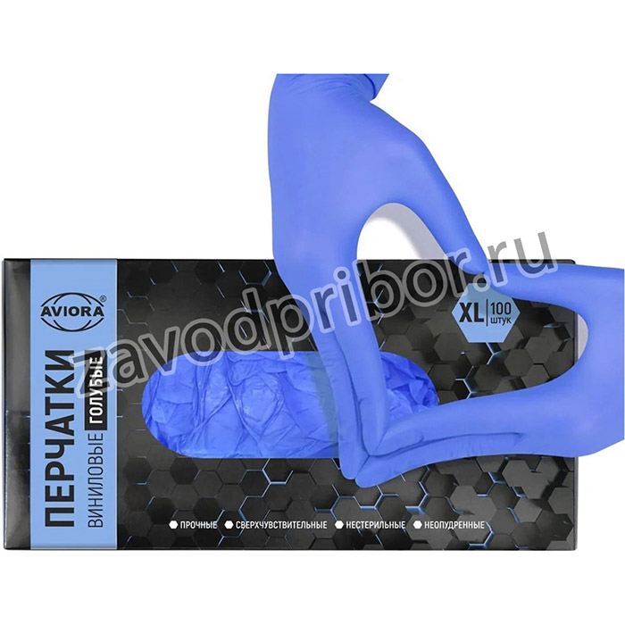 Виниловые неопудренные перчатки AVIORA голубые, размер XL, 100 шт 402-918 изготовлены из поливинилхлорида (синтетического материал).По сравнению с натуральными латексными перчатками они обладают меньшими аллергенными свойствами.
