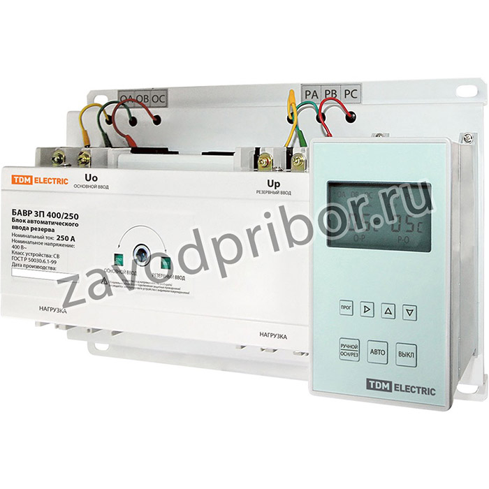 Представляет собой аппарат автономного действия (с возможностью ручного управления), состоящий из 2-х коммутационных аппаратов (силовых автоматических выключателей), управляющего контроллера переключения и моторного привода для взвода/отключения автоматических выключателей и переключения цепи нагрузки от одного источника питания к другому.