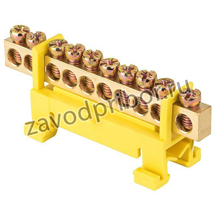 Шина "0" PE (6х9мм) 10 отверстий латунь желтый изолятор тип "Стойка" на DIN-рейку EKF PROxima Заявка: