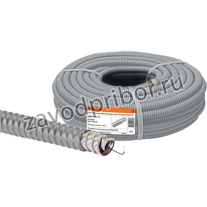 —Металлорукав в ПВХ-изоляции РЗ-Ц-П 10 серый с протяжкой (25м) TDM