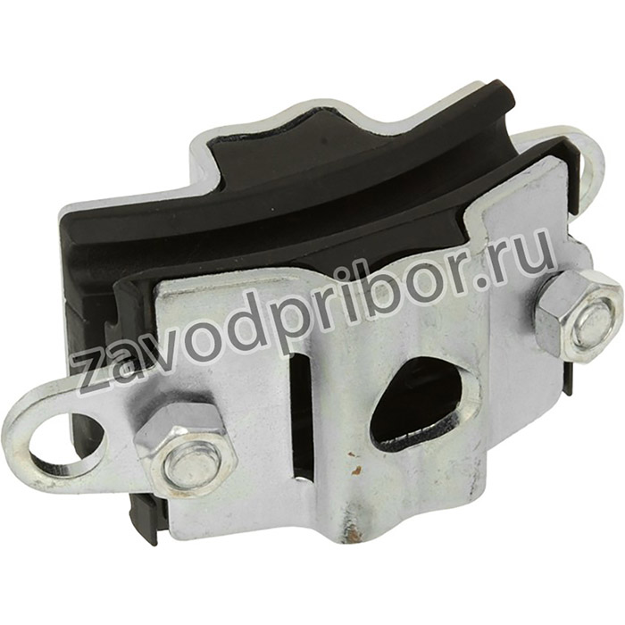 зажим поддерживающий, для кабеля типа "8", диаметр несущего элемента: малая канавка 4 - 5 мм, большая канавка 6 - 9 мм, максимальная рабочая нагрузка 8 кНПоддерживающие зажимы используются для подвески оптического кабеля с внешним силовым элементом типа "8" на промежуточных и угловых опорах воздушных линий электропередачи, связи, городского электрохозяйства (уличного освещения, наземного электротранспорта), элементов зданий и сооружений при длине пролетов до 100 метров. Поддерживающий зажим NMF-AL-SMS-3-8 имеет две канавки, позволяющие крепить кабель с различным диаметром троса по изоляции. Малая канавка позволяет разместить оптический кабель с силовым элементом диаметром от 4 до 6 мм, большая канавка от 6 до 9 мм. Пластиковые канавки предохраняют кабель от повреждений при сверхнормативной вертикальной нагрузке. Поддерживающий зажим состоит из двух зажимных щек из ультрафиолетостойкого термопластика, усиленных двумя стальными оцинкованными пластинами. Дугообразные канавки позволяют использовать зажим на промежуточных столбах с углом поворота трассы кабеля до 25 градусов.