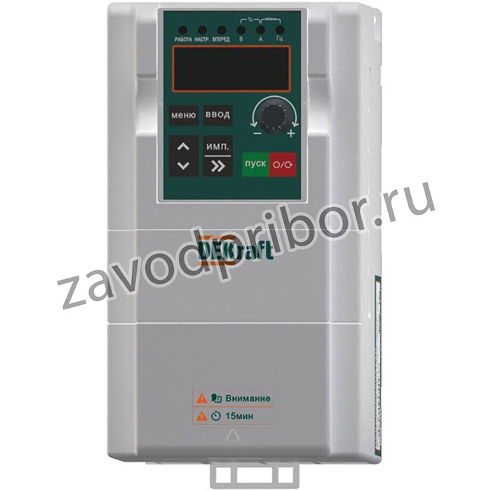 Преобразователи частоты ПЧ-510; Входное напряжение 380В 3 фазы; IP 20; тормозной модуль; Тяжёлый режим работы Рдв. - 1.5 кВт; Частотные преобразователи DEKraft представляют широкий спектр полностью протестированых и готовых к подключению решений для управления электродвигателями. Заявка: