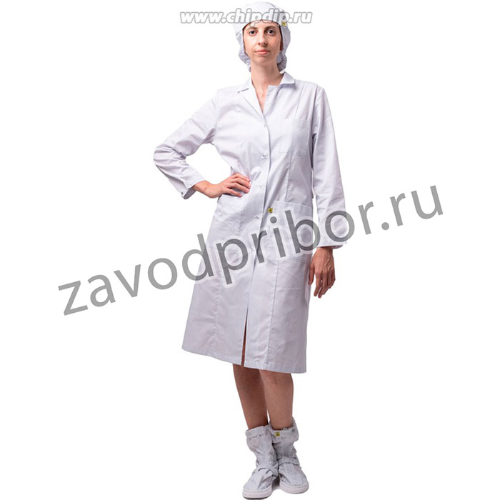 Все швы облимованы. В окантовку шва добавлена визуально различимая токопроводящая тесьма с сопротивлением не более 10Е6 ОМ, соединяющая все части халата между собой.