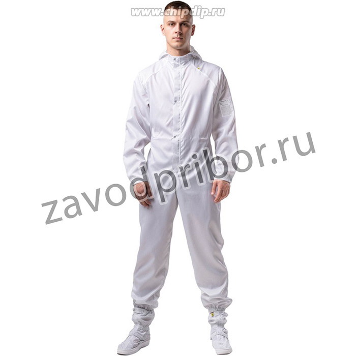Мужской комбинезон для чистых помещений М-150 с капюшоном имеет прямой силуэт, кокетки на передних полочках. Состав ткани: Ткань "А". Полиэстер - 98%, углеродная нить - 2%. Тип застежки - молния. |