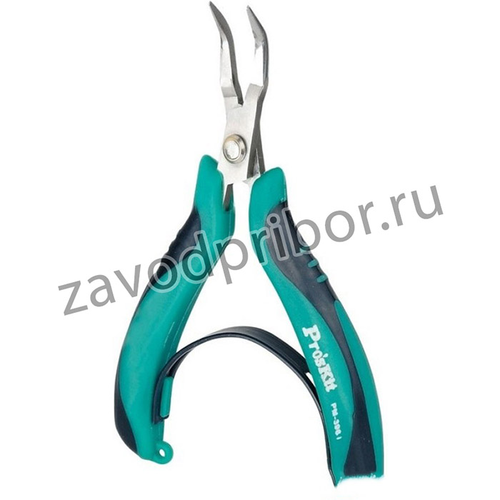 Длинногубцы (изогнутые) ProsKit PM-396I 00301874 оснащаются двухкомпонентными рукоятками. Это уменьшает скольжение ладоней при значительном усилии сжатия.