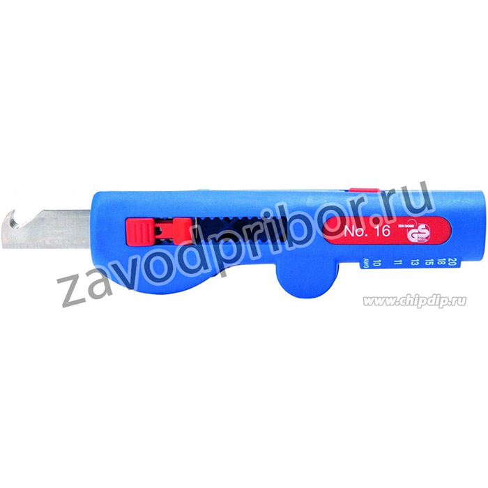 Для круглых кабелей и кабелей с толстой изоляцией (для помещений с высокой влажностью) диаметром 8 - 13 мм (например, NYM от 3х1.5 мм2 до 5х2.5мм2) плюс стриппер для жил и проводов сечением 0.5-6мм2. Удобен для снятия оболочки кабелей в местах с затрудненным доступом - в разветвительных коробках, в распределительных шкафах и т.д.