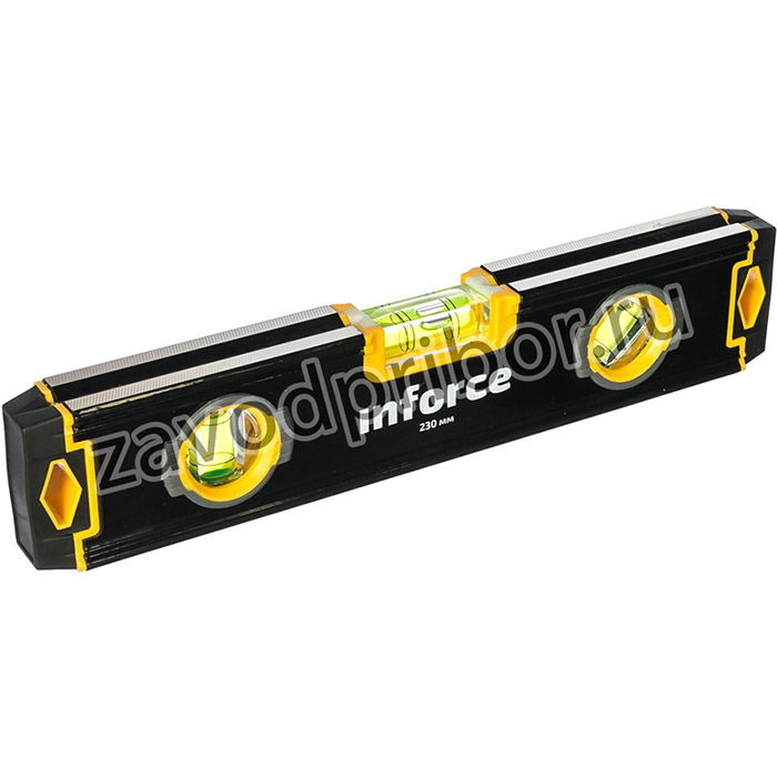 Магнитный уровень Inforce 230мм 06-11-054 - легкий и удобный в применении измерительный инструмент для проверки правильности вертикали или горизонтали.С помощью магнита уровень удобно крепить на металлических профилях, например при сварке квадратных труб и других конструкций. Высокая точность показаний обеспечена тремя глазками: вертикальный, горизонтальный и угловой 45 градусов.