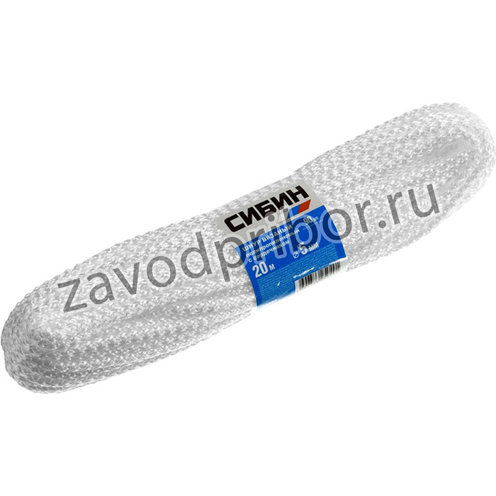 Шнур вязаный полипропиленовый СИБИН с сердечником, белый, длина 20 метров, диаметр 5 мм