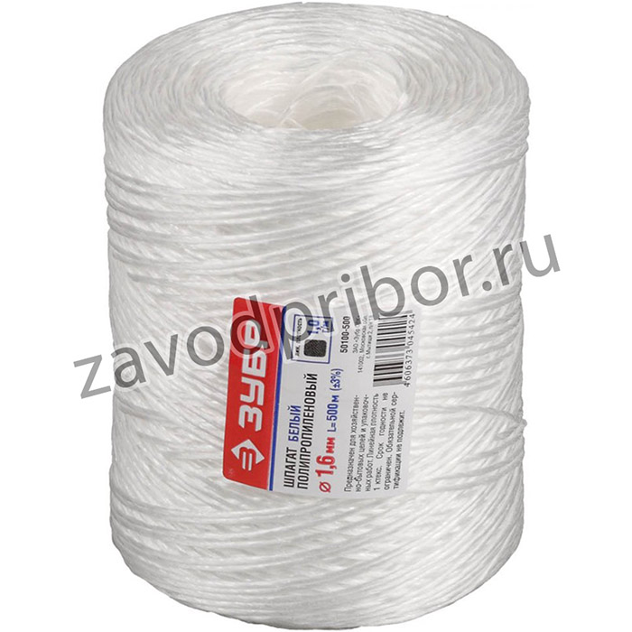 50100-500, ЗУБР d 1,6 мм, 500 м, 1600 текс, 32 кгс, белый, полипропиленовый шпагат (50100-500)