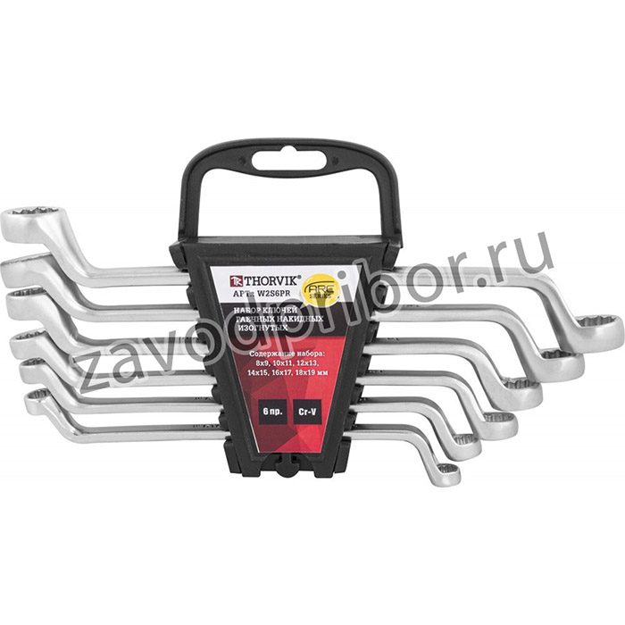 —W2S6PR Набор ключей гаечных накидных изогнутых серии ARC на держателе, 8-19 мм, 6 предметов