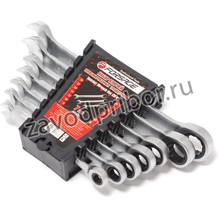—F-51072, Набор ключей комбинированных трещоточных, 7 пр: 8, 10, 12, 13, 14, 17, 19 мм, в пластиковом держател