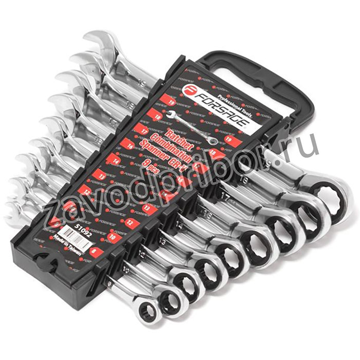 —F-51092, Набор ключей комбинированных трещоточных, 9 пр: 8, 10, 12, 13, 14, 16, 17, 18, 19 мм, в пластиковом