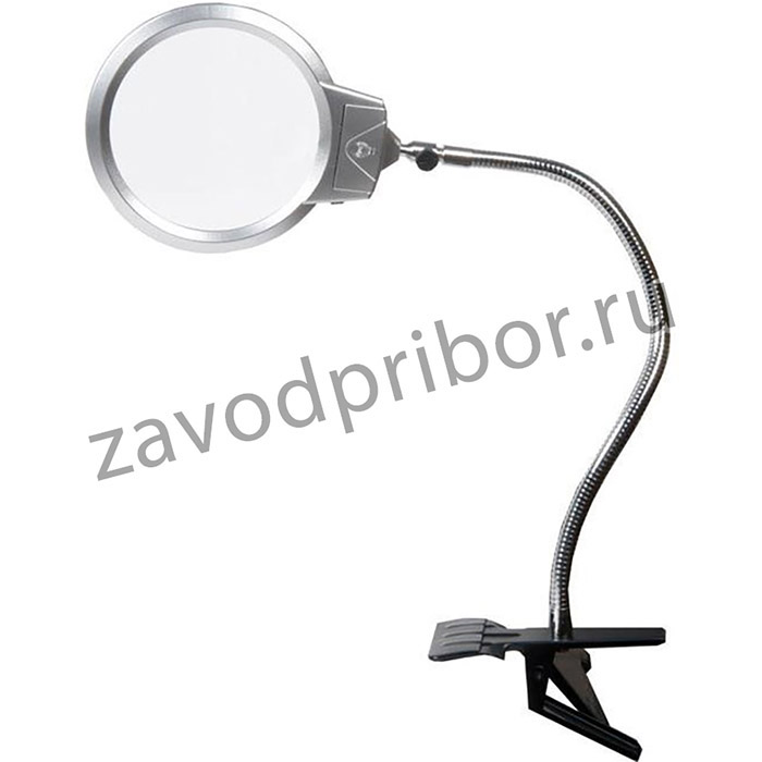 —Лупа настольная MG15122-1С линза 130мм на гибком штативе (прищепка) c подсветкой