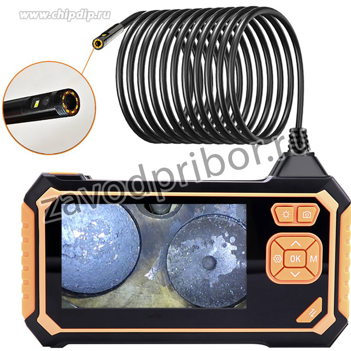 iCartool IC-V117 промышленный видеоэндоскоп в противоударном корпусе с двумя камерами и LCD экраном диагональю 4,3"'. Вторая камера ориентирована на 90 градусов относительно основной. Это позволяет решить основную проблему специалистов СТО по контролю состояния впускных и выпускных клапанов ДВС. Наличие второй камеры дает возможность отказаться от использования эндоскопов c дорогостоящими управляемыми зондами. Обе камеры делают фото в разрешении Full HD 1920х1080, что позволяет выявить мельчайшие повреждения исследуемых узлов и поверхностей. Время работы до 3х часов от одной зарядки. Зонд, диаметром 8 мм и длиной 3 м имеет влаго и пылезащиту IP67. В комплект входят 3 насадки. Насадки крепятся к зонду при помощи резьбового крепления, что позволяет избежать падения насадок с зонда и расширяет возможности видеоэндоскопа (крючок для работы с электропроводкой, магнит для извлечения металлических предметов из труднодоступных мест).