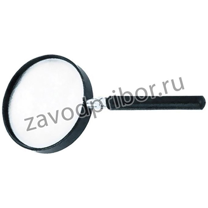 Классическая лупа в металлической оправе с пластиковой ручкой.