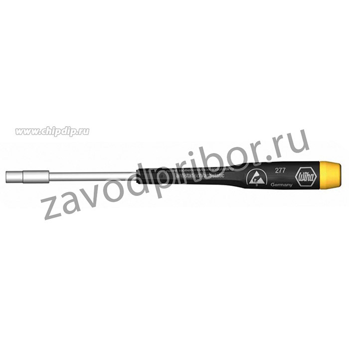 WIHA 32314, Антистатический (ESD) торцевой ключ с шестигранником (метрический), наконечник 4.5x60 мм (внешний диаметр головки 6.2 мм), с крутящимся колпачком, круглое жало, с внутренним отверстием для выступающих стержней с резьбой, серия Precision ESD (277 ESD), производитель WIHA. Применяются в электронике для работы в зонах защищенных от электростатических разрядов (EPA-зонах). Соответствует стандарту: IEC 61340-5-1. Особенности антистатических торцевых ключей WIHA Precision ESD с шестигранником, серии 277 ESD