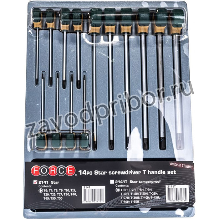 Набор отверток торкс с Т-образной ручкой FORCE 2141 удобен в использовании - наличие Т-образных рукояток повышает эффективность работы и снижает необходимое усилие.