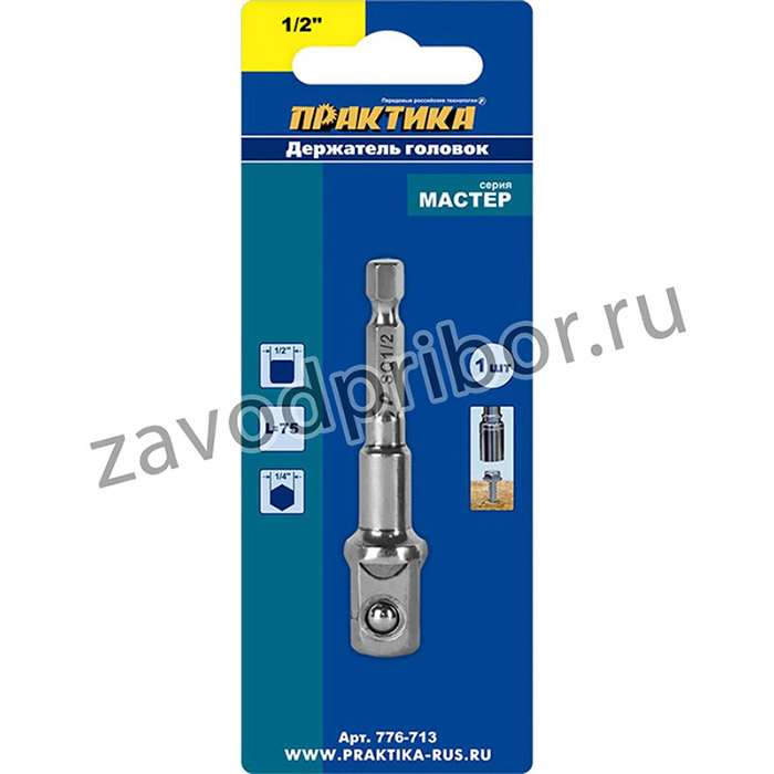 Адаптер ПРАКТИКА 776-713 предназначен для шуруповертов. Применяется для установки торцевых головок. Обеспечивает переход с шестигранного типа крепления на крепление - квадрат с подпружиненным шариком. Заявка: