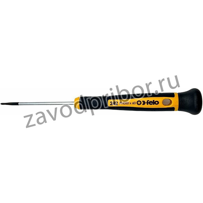 Отвертка крестовая для точных работ PH 000х60 идеально подходит для ремонта оргтехники, ноутбуков, телефонов и очков. Стержень отвертки, проходящий по всей длине рукоятки, изготовлен из хром-молибден-ванадиевой стали, закаленной в масле, что делает инструмент более долговечным по сравнению с обычными отвертками. Рукоятка выполнена по технологии двухкомпонентной ручки с мягким внешним покрытием для дополнительного комфорта. Свободно вращающийся колпачок минимизирует трение. В рукоятке имеется отверстие для удобного хранения инструмента. Страна производства - Германия. Гарантия на инструмент 15 лет.