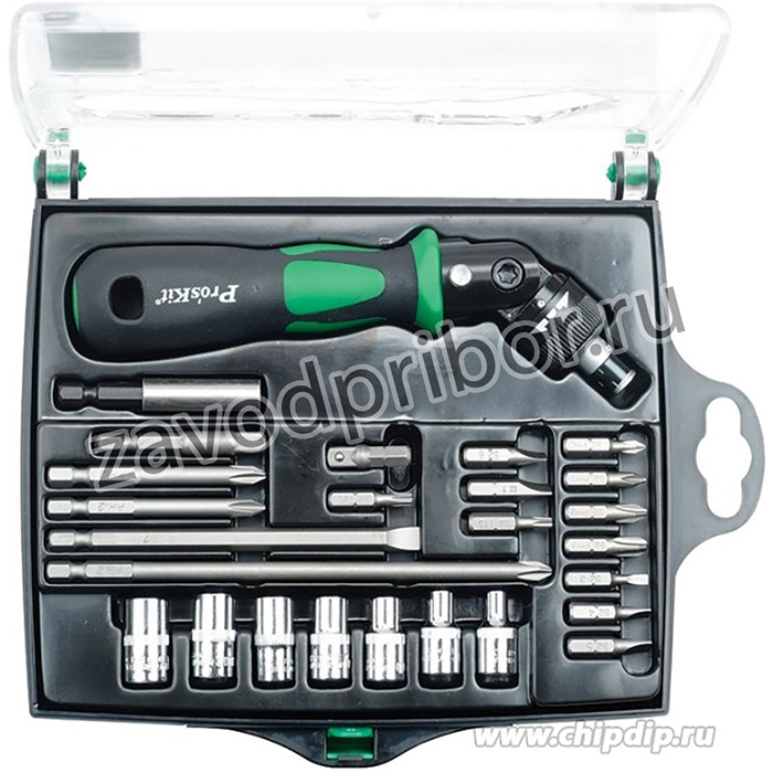 Реверсионная отвертка-трещотка SD-2314M с 25 сменными насадками.
